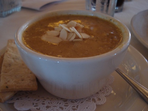 For lunch I ordered a cup of Butternut Bisque (complete with almonds and some shortbread crackers)