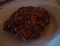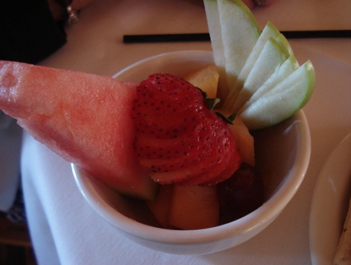 Coming from a huge sharing family, I also had a few tastes of the husband’s biscuits and gravy and eggs, my mom’s apple panini (Mmmm!!), a fried green tomato, and Karen’s fruit!