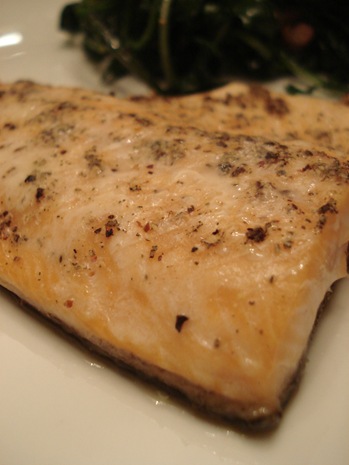 Trout (really fresh and really good!) with salt, pepper and sage, baked at a 450* oven for 10 minutes.