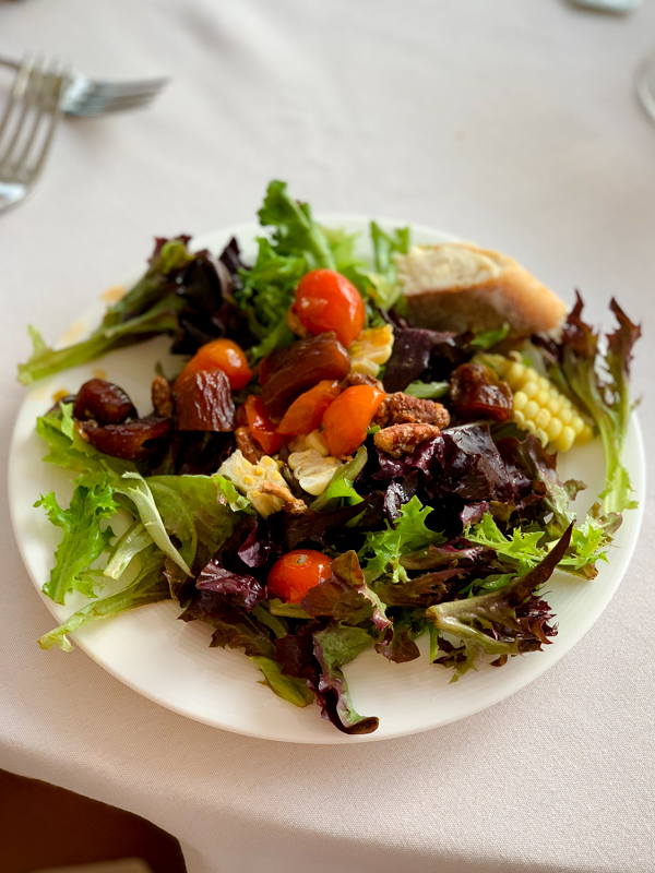 We had a seated salad with dates, fresh corn, and spiced nuts and then a buffet of delicious food after dark that I didn’t capture in the dim lighting.