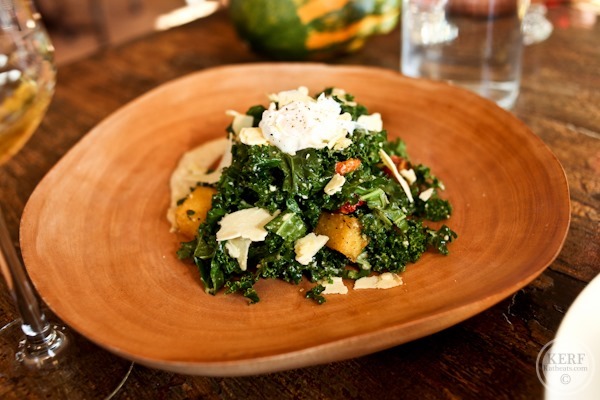 Right when we walked in I saw a kale caesar salad on the special chalkboard. Stop there, Iβll take one please! This one featured polenta croutons, oven-dried tomatoes, shaved Red Row cheese and poached quail egg. I need to reinvent this in my own kitchen.