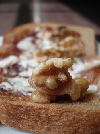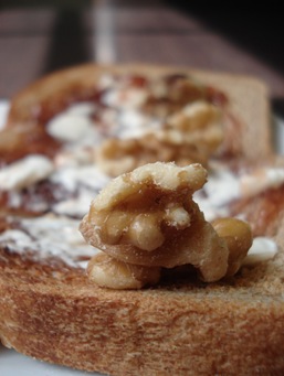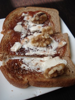 And a piece of toast, topped with some jam, leftover cream cheese + a few walnuts for omega-3s!