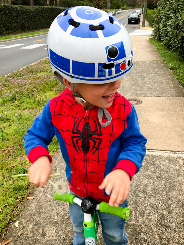 I also wanted to let you know that it looks like Mazen’s helmet isn’t fitted correctly – maybe too loose? Here’s a website I’ve used to help fit my own son’s helmet. http://www.chla.org/blog/rn-remedies/bicycle-helmets-getting-the-right-fit I showed my son M’s helmet though and now he wants an R2D2 helmet himself…LOL!