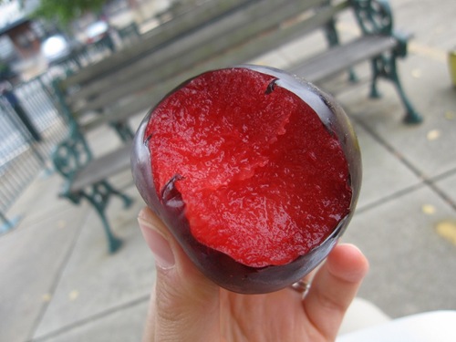 I love red plums! I like to squeeze them a bit to loosen the pit and make them juicier before biting in.