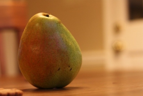 A juicy organic pear on the side, which I sliced at work and sprinkled with cinnamon that I packed in my lunchbox.
