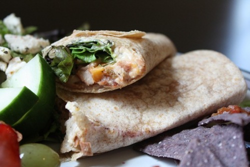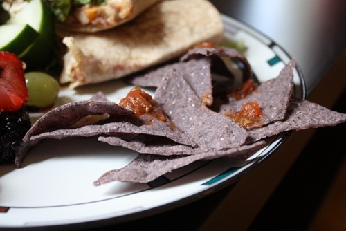 I had Caitlin make a wrap for me [containing beans, cheese, salsa and lettuce] and wrap it up like she does so well. It’s fun to have bloggers make the foods you see on the internet 😉