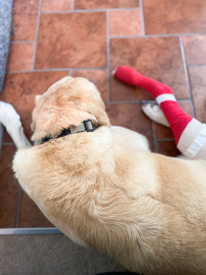 He LOVES being outside and cries every single time we have to come back in. We’ve been doing lots of exploring behind our house.