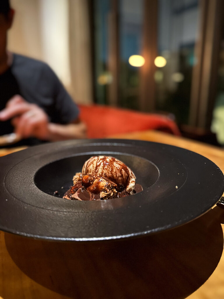 We were often too full for dessert, but we had to get one this night when we saw the table next to us enjoying it. A homemade cookie topped with coffee ice cream, caramel, and a chocolate sauce that they poured on top at the table.