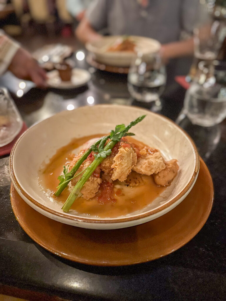 For dinner we were served a tempura fish amuse bouche plus tableside bread.