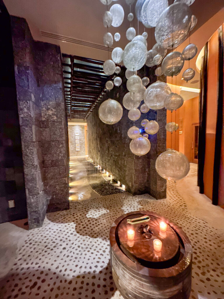 When I am planning a trip, I always like to check out the spas to see if they have any really unique or cool services. While a massage or facial is always nice, I try to reason that I can get them for less money at home and I should spend my time enjoying the pool or the beach (which I can’t do at home!). But when it rains, I’m the first to pick up the phone and see what’s available. That’s what happened later in our trip! Hence, I was able to visit two different spas.
