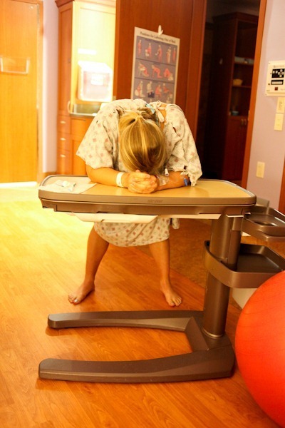 The most uncomfortable position was when Jen had me lie flat with my legs lower than my hips to encourage him to move downward, and I remember actually feeling him slide down with a strong contraction. Painful, but effective.