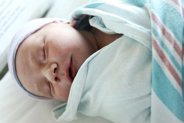 They pulled him out and put him right on my chest. I remember thinking “He’s so warm!” He was a jiggly little warm baby, and he started crying right away. His Apgar scores were 8 and 9.
