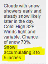 We may get snow this weekend – I am crossing my fingers for no work on Monday!