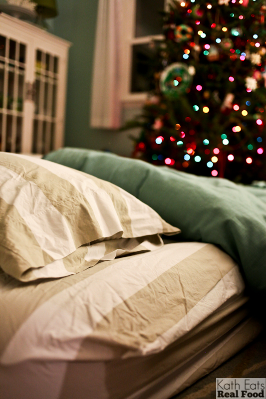 I slept on an air mattress underneath the Christmas tree, which was kind of fun!