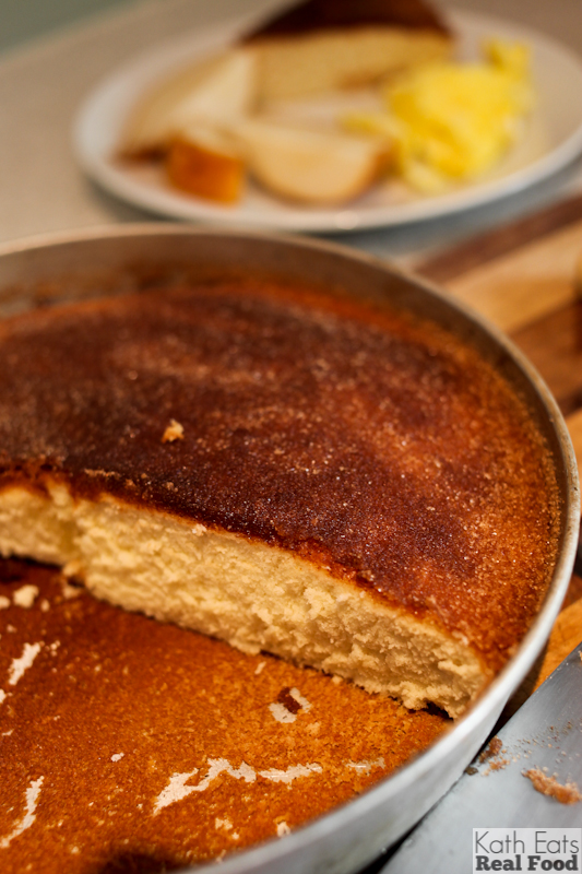 It’s called “Hot Milk Cake.” I melt butter for the top and then dust it with cinnamon mixed with sugar. My mom made it too and says it’s important not to let the milk get boiling hot.