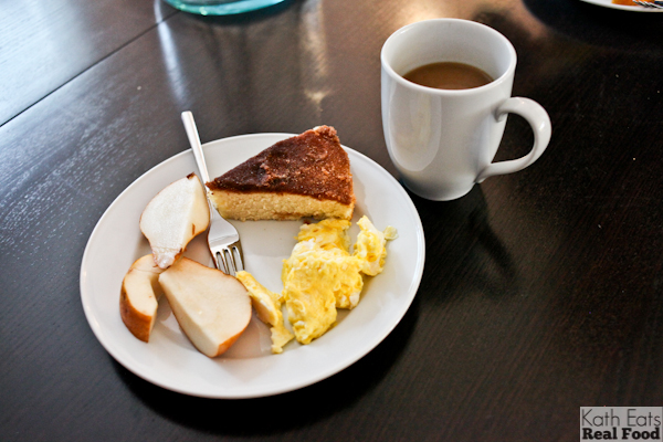 My parents are here – a last minute decision. We are glad they came to make everything more jolly! Mom brought her famous breakfast cinnamon hot milk cake, which we enjoyed with eggs and pears.