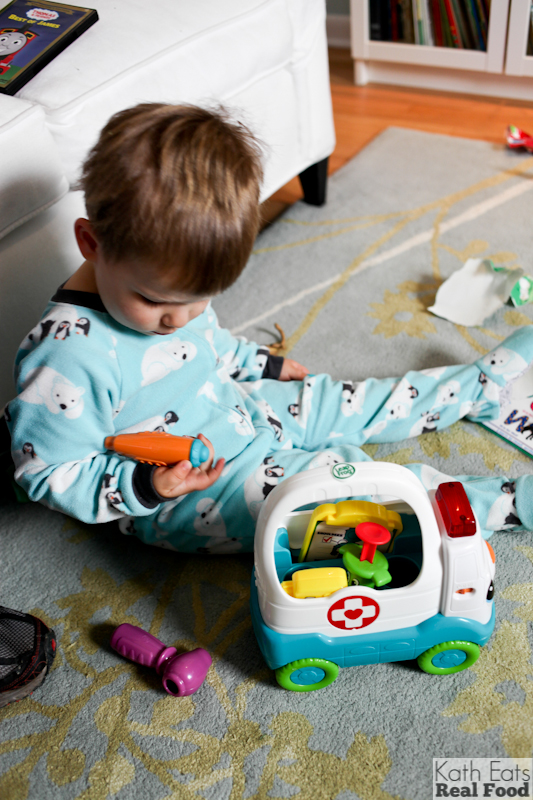 We’ve been slowly opening family gifts all morning too – Mimi and Papa sent a medical kit that has been a big hit. And some yummy pumpkin lager soap!