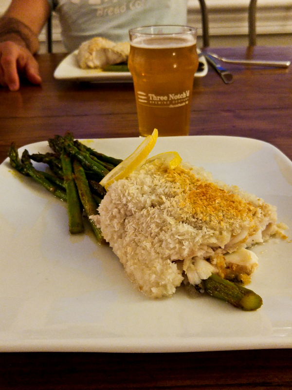 For dinner we had an AMAZING sable fish we got at our farmer’s market. It was topped with mustard and panko and baked for 20 minutes. Served with asparagus! This was the best fish ever! Beer for carbs : )