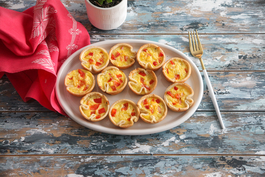 Our four-ingredient recipe resembles a mini quiche, with a flaky crust and egg filling but in a perfectly bite-sized portion. They are not a pop in your mouth type of small, but they are small enough to call them a snack. Three bites, max! You can store them in a tupperware in the fridge for a few days. Note you’ll want to reheat them in a toaster oven so the crust stays crunchy.