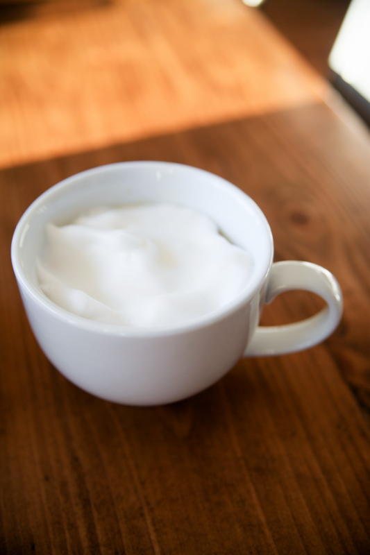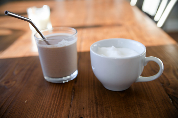 Breakfast today was a strawberry – banana – peanut butter smoothie. Plus a cappuccino! That cloud of foam!!