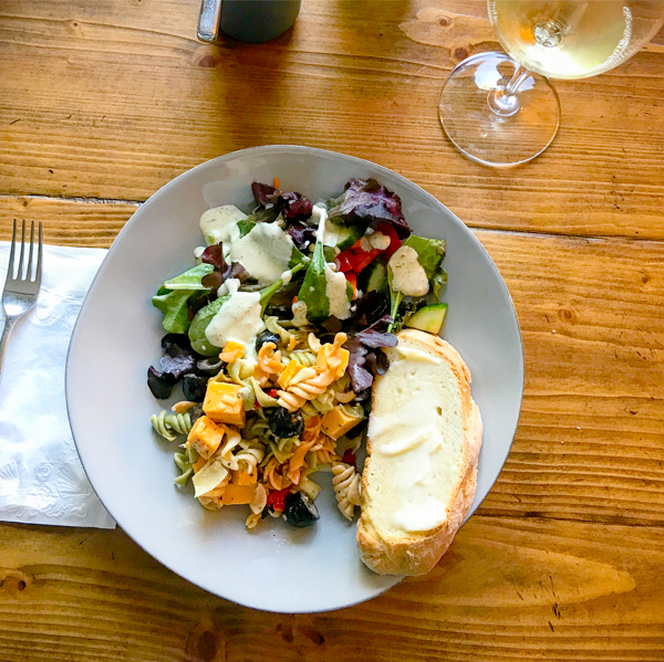 We had pasta salad, chopped salad, and homemade bread for our main meal.
