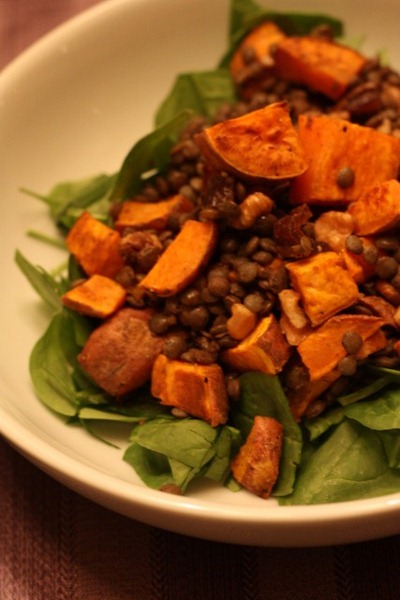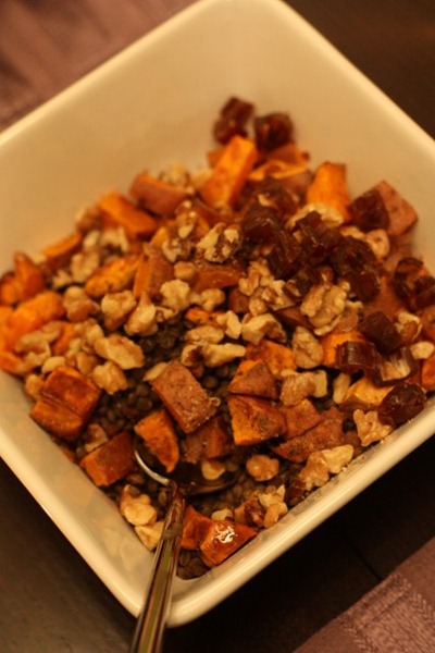 Lentil + Sweet Potato Salad with Dates + Walnuts
