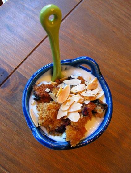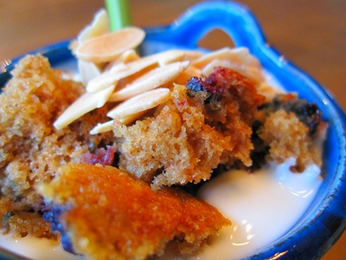 mmm, your muffin snack looks delicious. that blue bowl perfectly complements the blue berries 🙂