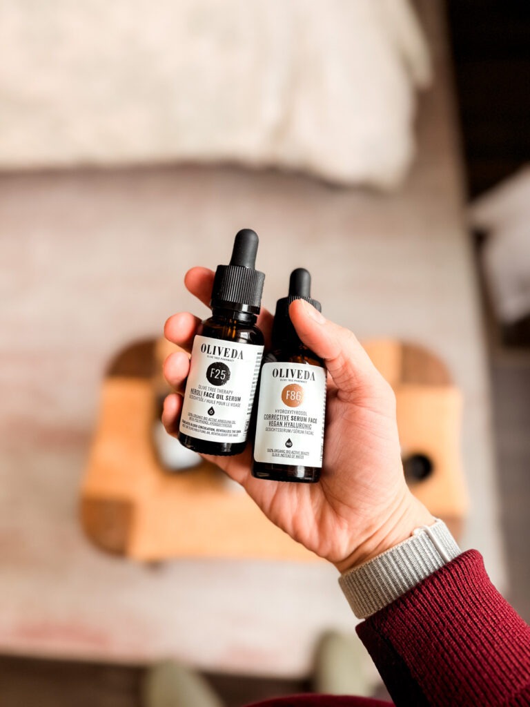 Hydration is the foundation of winter skin care. Layering hydrating products—like essences or serums with hyaluronic acid—helps replenish water loss before sealing it in with moisturizer. Think of hydration as the first step and moisture as the lock that keeps it there. I have been toner-step obsessed since I first found the Countertime Essence, and now I use Oliveda’s Tonics as my hydration step. I put it on immediately after washing my face or it starts to feel tight that quickly!