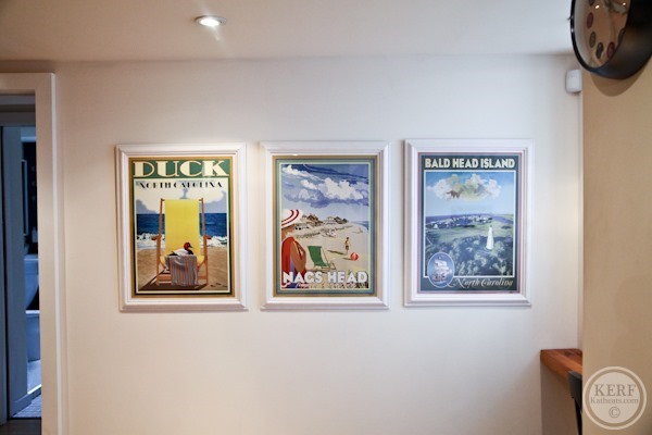 I read about Beach Town Posters in one of my magazines – I think it was Coastal Living – and knew they would be the perfect addition to our beach house theme. When I saw that many of my favorite North Carolina beaches were included, I had to get 3! I grew up going to the Outer Banks and of course love Bald Head Island. I hung them on the big wall in our basement and put them into these frames I bought on Craig Frames. They are the perfect beach house décor for the space! I plan to add a file cabinet furniture piece underneath them when I finish browsing the options. Leaning towards this one!