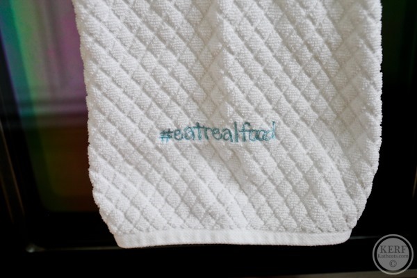 Need a reminder to eat more real food? KERF reader Marney sells handmade hashtag towels in her Etsy shop and appropriately wanted to send me the #eatrealfood one.