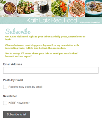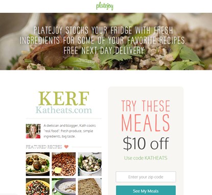 Plate Joy is a company that is kind of a mix between Cook Smarts, Hello Fresh and Blue Apron – users browse recipes and create a meal plan and then Plate Joy works with local grocery stores to have the ingredients delivered. They kindly asked me if I’d like to submit some of my KERF recipes to be included in the recipe library. My landing page is below, and if you try the service you can get $10 off with the code KATHEATS. There are a lot of other recipes and bloggers, so you can mix and match too!