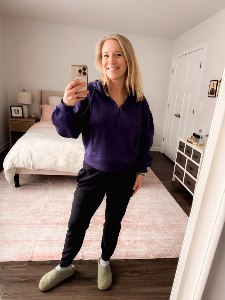 Old Navy killed it with their cozy hoodies this year. I am obsessed with the Twist-Front Sweatshirt on the left. It’s so soft – like the Lou and Gray line at LOFT. The purple hoodie I went back for when it went on sale and used my SuperCash! And these are the best high impact sports bras I’ve found lately! Lastly, I’ve written about the StudioSmooth leggings, but I love to get those on sale too. They’re the best blend of high waist and compression and a great price!