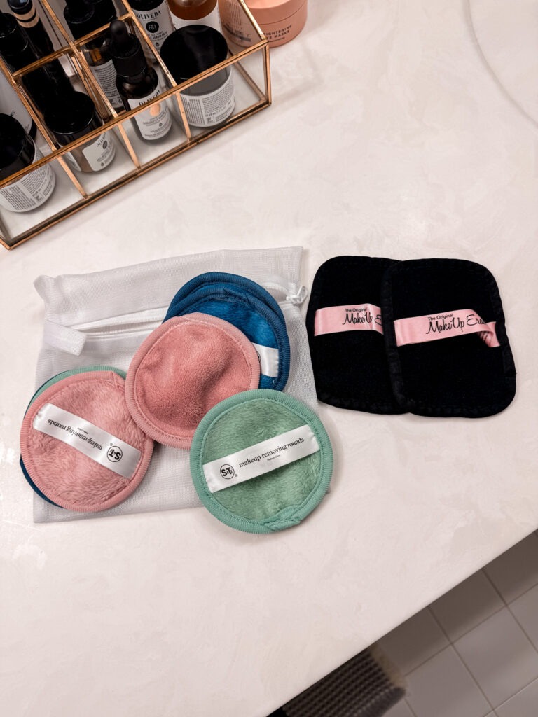 I needed to buy more so I would have more for travel. (Plus I don’t put them in the wash baggie, so they disappear into my clothes!) I got these knock-off brand ones, and I think I like them even better than the name brand. The circular shape is easier to use at the sink because it’s less fabric. 10/10 recommend these over a washcloth.