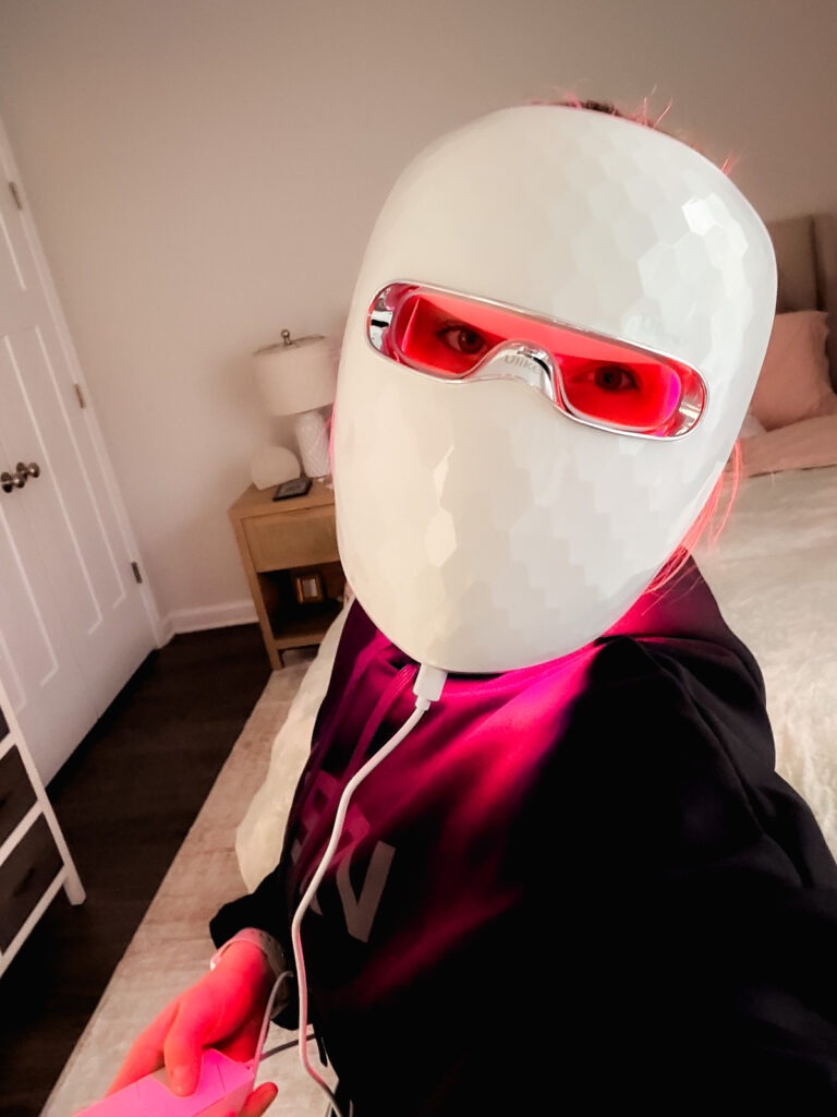 I’ve been using the firm layer for anti-aging the most, but I mix in the glow and rejuvenate colors maybe once a week. I have been using the mask about 5 days a week. One thing that surprised me was that the timers are quick! Five to eight minutes and you’re done. I thought it would need to leave it on for 20+ and so this is a big win. I’ve been doing it either in the morning (if I shower at home) or at night (if it’s a gym day) right after cleansing and toning but before serums and moisturizers. I love that it’s cordless and I can multi-task!
