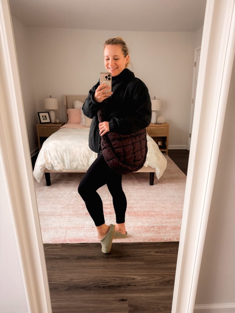 Love this quilted jacket for spring and fall and the Hold It All Puff Bag is great for toting around the boys’ things when I’m put.