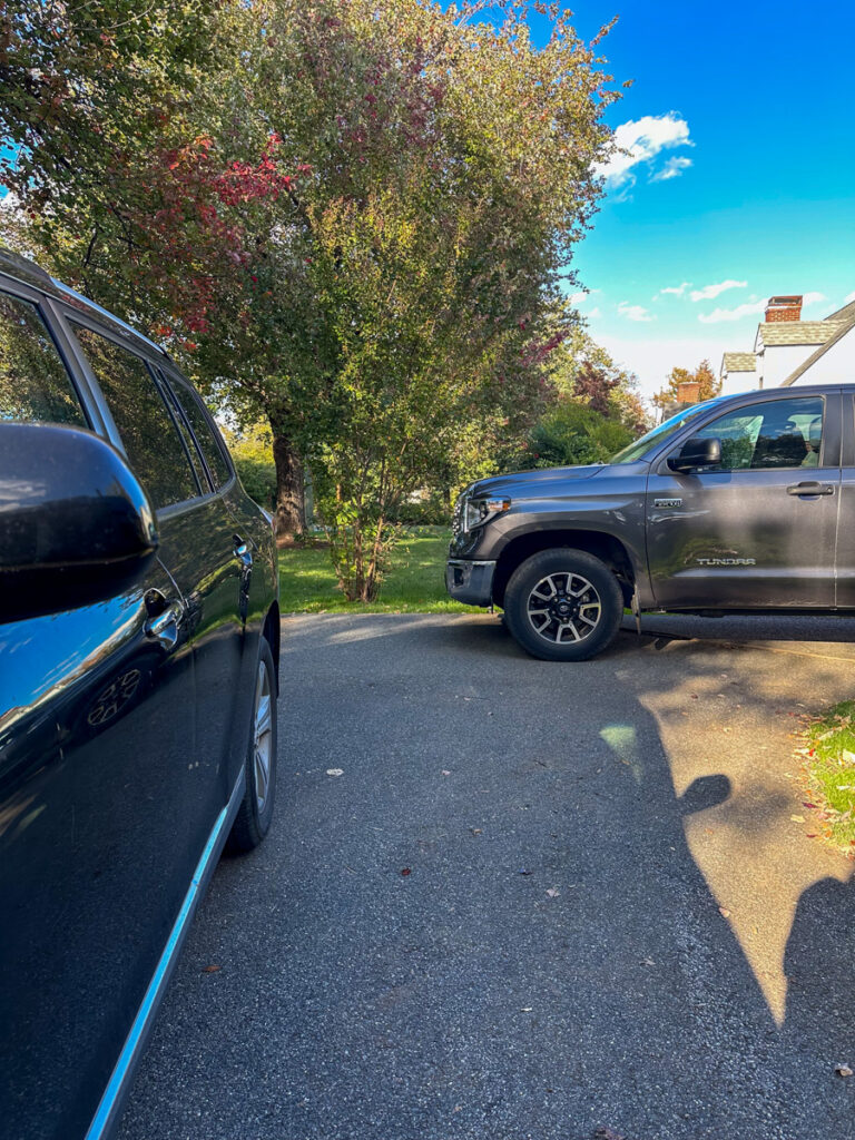 When we started to plan our our renovation, we knew adding the side porch would mean Thomas’s truck’s parking spot got pushed back a few feet, which cuts off my ability to turn around in the driveway. It was already tight, but losing 3-4 feet would make it even tighter. We debating parking on the street, parking in the back, making a new, wider driveway. None of these alternatives seemed like good ideas, so we decided to cross that bridge when we get there.