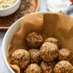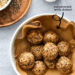 These healthy snack balls are one of my all-time favorite recipes! The oat, oat flour and graham cracker crumbs give them a divine cookie dough taste. They might as well be cookie dough! I wonder what they’d be like baked….