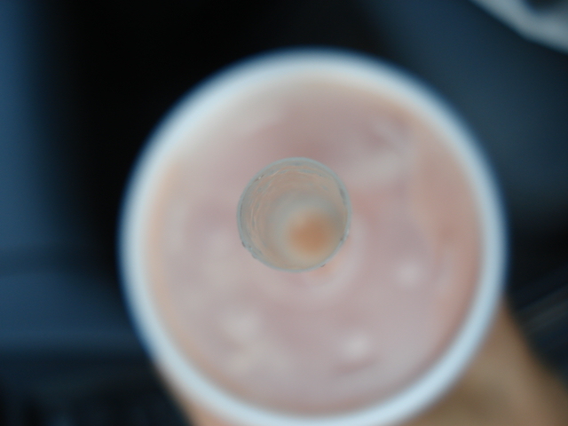 I stopped by Carolina Smoothies because it’s right on my way to class and got the Refresher : peach, strawberry, pineapple, banana + honey. I was very disappointed to see him pour peach + pineapple juice into the container instead of whole fruit. I’d prefer a blend of just whole fruit and ice. It still tasted great and was filling, but not nearly as good as the Mangosteen one I got a few weeks ago at Smoothie King. I have a feeling I might get these more often when my busy schedule starts, as it was so cold (good for hot days) and filling (good for portable dinner supplement).