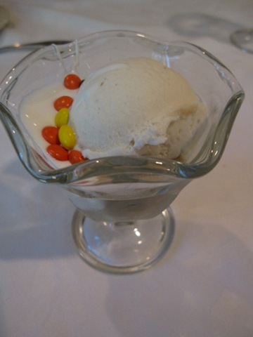 I ended with some ice cream with some marshmallow sauce and a few chocolates. And a bite of momโs peanut butter pie.