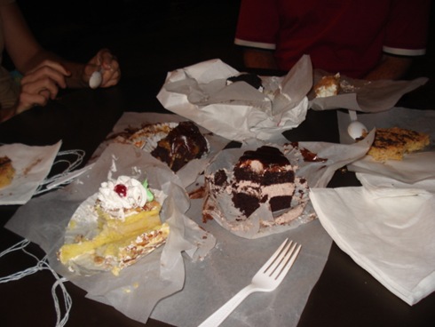 There’s really no telling how much I ate, but I had about 25% of the chocolate mouse, 40% of the rum, 25% of the German Chocolate. A big bites of the cheesecake, canoli and cookie.
