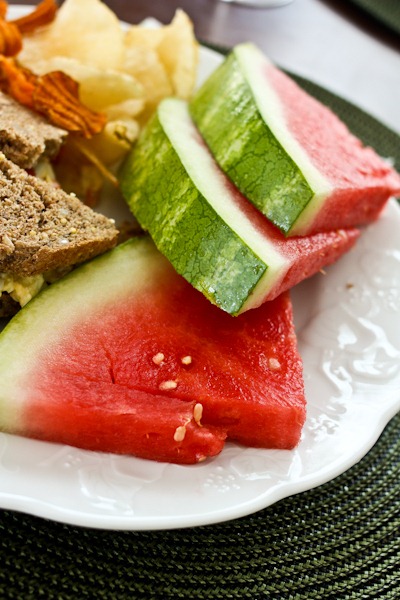 Egg salad (my fav), watermelon AND chips? sounds like the perfect lunch to me!