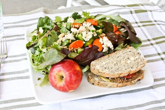 Salads and sandwiches: two of my favorite foods! I’ll think I’ll have something similar for lunch. Yum!