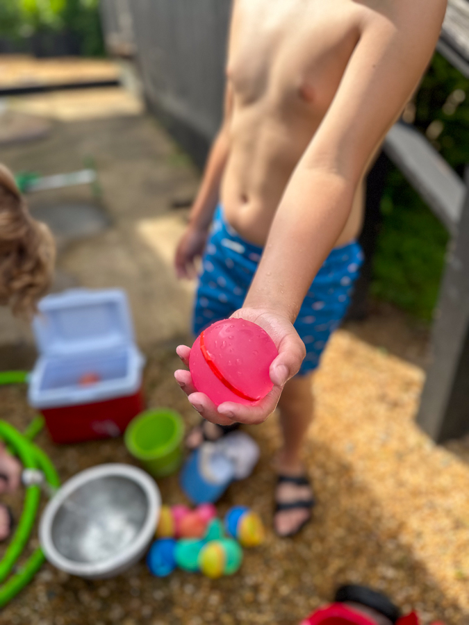 We recently discovered these silicone reusable water balloons that close with a magnet. GAME CHANGER!