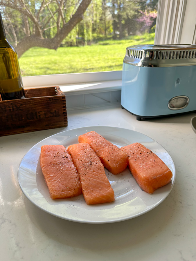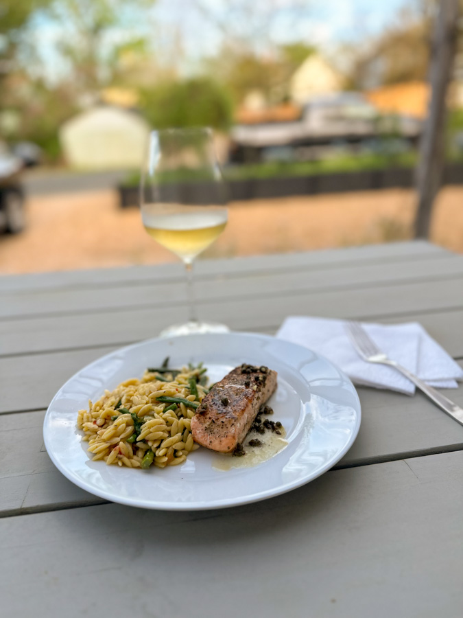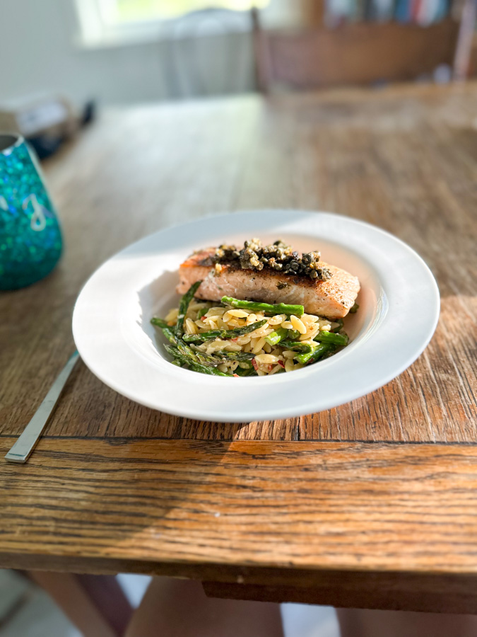 Blue Apron Salmon with Caper Butter, Orzo + Asparagus