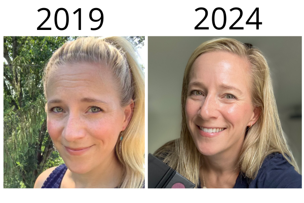 Check out the comparison of me at age 36 vs. almost 42! My lines are not gone, but they aren’t worse.