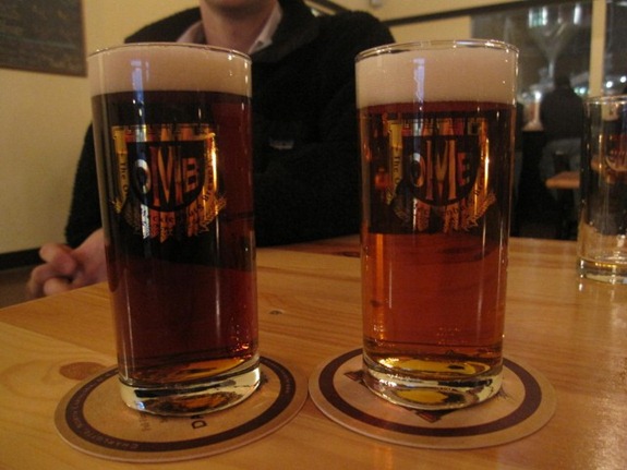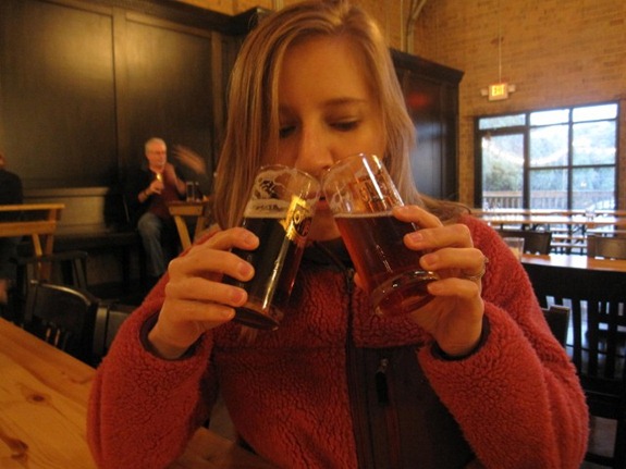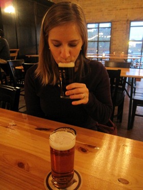 Sleeping beauty woke up from his nap and convinced me to visit Olde Mecklenburg Brewery (OMB in our household), which is a new brewery in Charlotte that makes traditional German beers. They just debuted the Dunkel lager last night and Matt was eager to try it out. Here’s when we went this summer for the first time!