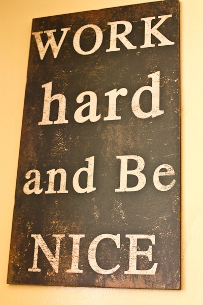 Love that “Work Hard Be Nice” sign too!