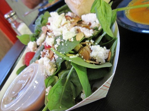 I was pleased with the good-sized salad – and that it came with a roll! (Er, maybe that came with the soup!?)