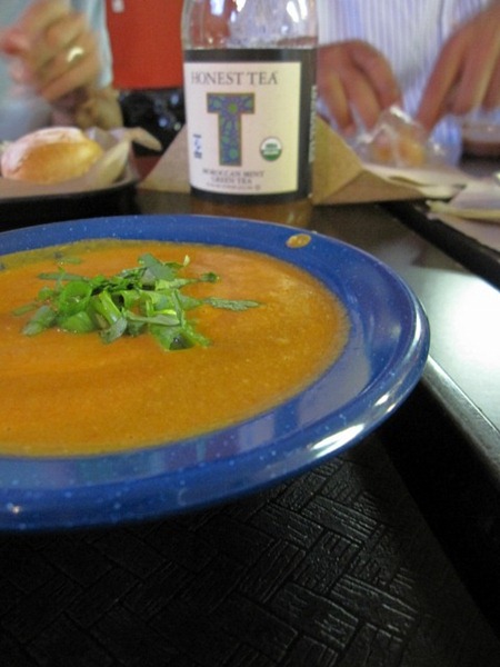 I ordered a cup of the Spicy Peanut Tofu Soup, which was thick and awesome.