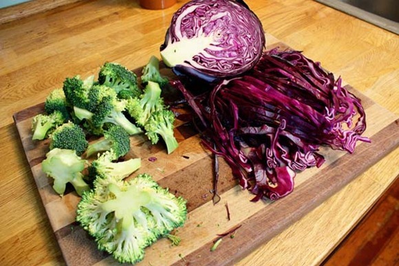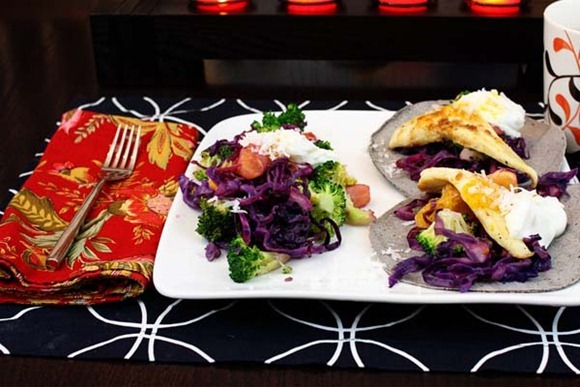 These pictures are fabulous today. The purple cabbage and the black placemat totally make the photo! Gorgeous!